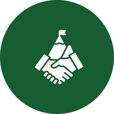 The hexagonal design represents the strength and interconnectedness of our approach, while its green, dark red, and white colors symbolize growth, sustainability, bold determination, and trusted service.